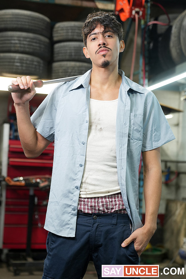 Say Uncle “Internet Papi’s repair shop: his rules, no exceptions. Every time a hot customer comes in, he must have a piece of them. Take Angel, for example, a gullible and handsome client who thought he would just drop by and pick up his car.“