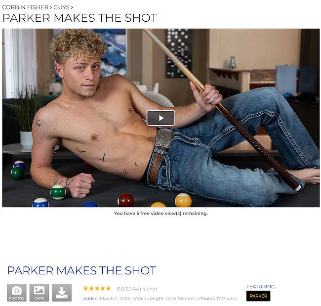 After three straight scenes at Hot College Fucks, Parker Sims had a solo scene released at Corbin Fisher, followed by his bisexual scene at Bi College Fucks.